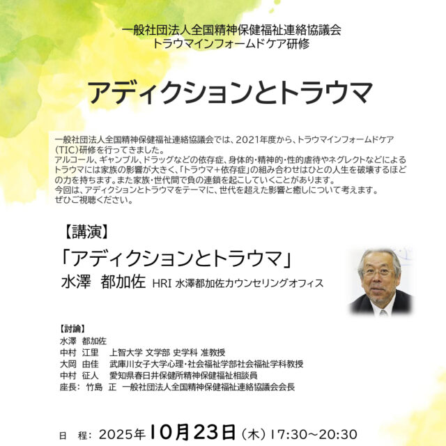 トラウマインフォームドケア研修「アディクションとトラウマ」(10/23)