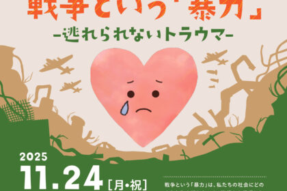 戦後80年連続平和企画戦争という「暴力」-逃れられないトラウマ 日時 2025年11月24日(月•祝)午後2時〜4時30分(予定)...